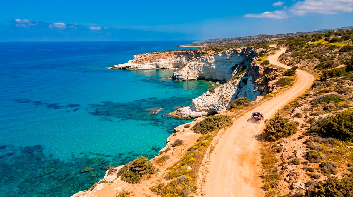 - Джип-сафари: Группа пересаживается на Land Rover Defender. Выезд на полуостров Акамас.