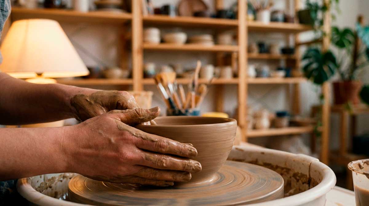 Участники лепят чашки, вазы или тарелки своими руками. Это может быть индивидуальная работа за кругом (нужен инструктаж) или лепка за общим столом, где команда общается в процессе создания формы.