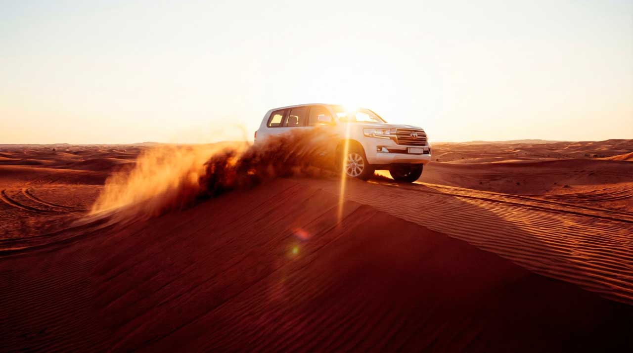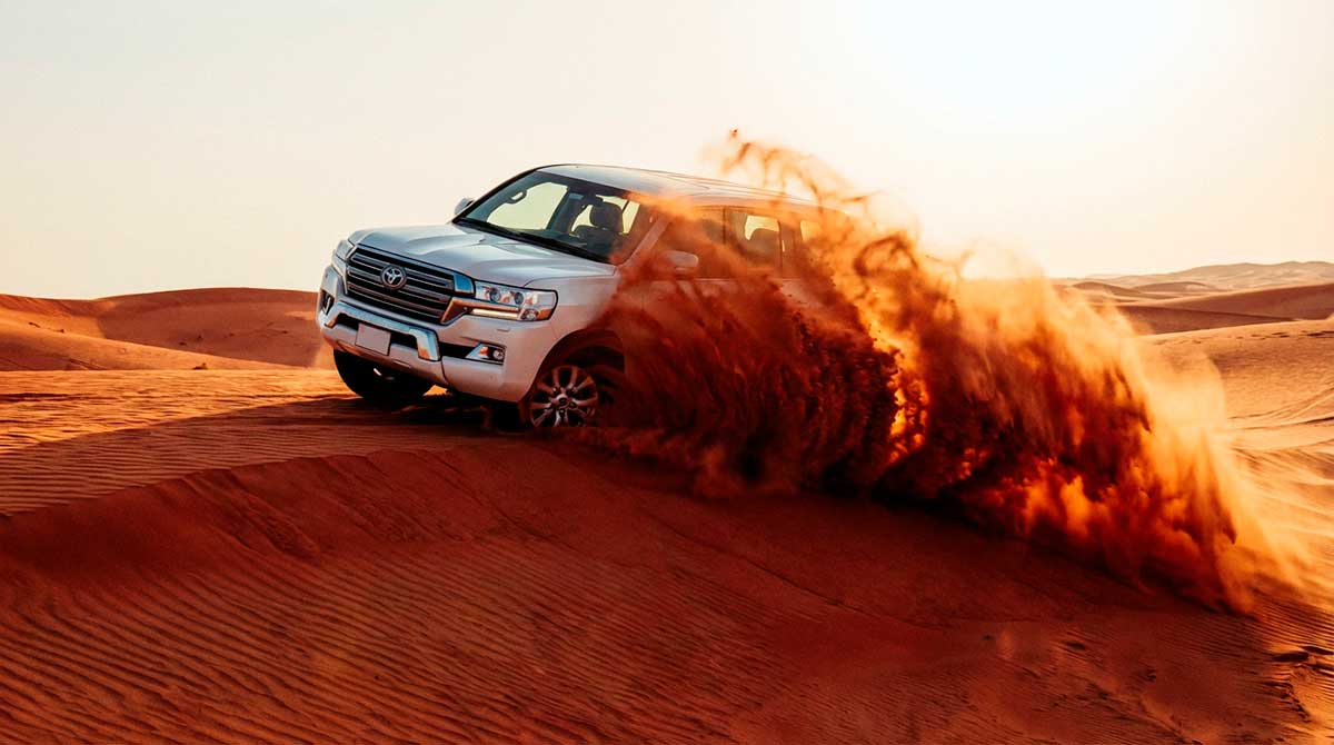 Подача джипов Toyota Land Cruiser (по 6 человек) прямо к дверям отеля. Комфортный выезд из города в сторону заповедника занимает около 45–60 минут. Урбанистические пейзажи постепенно сменяются бесконечными барханами.
